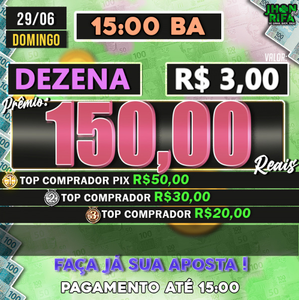 TOP 1ºR$50,00 /TOP 2º R$30,00 /TOP 3ºR$20,00