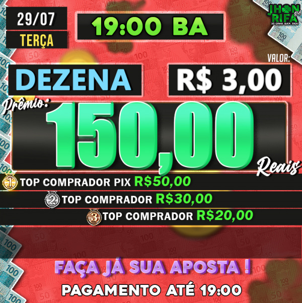 TOP 1ºR$50,00 /TOP 2º R$30,00 /TOP 3ºR$20,00
