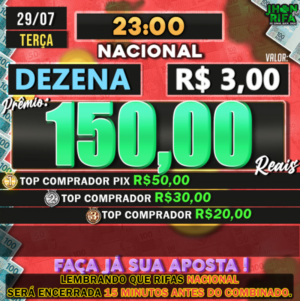 TOP 1ºR$50,00 /TOP 2º R$30,00 /TOP 3ºR$20,00