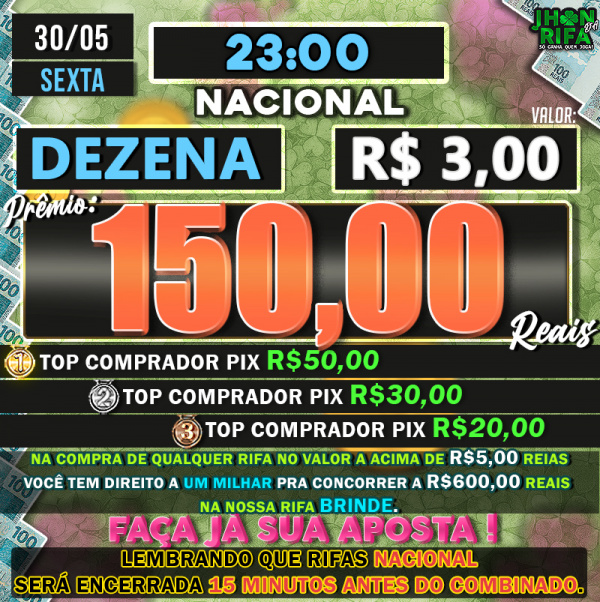 TOP 1ºR$50,00 /TOP 2º R$30,00 /TOP 3ºR$20,00