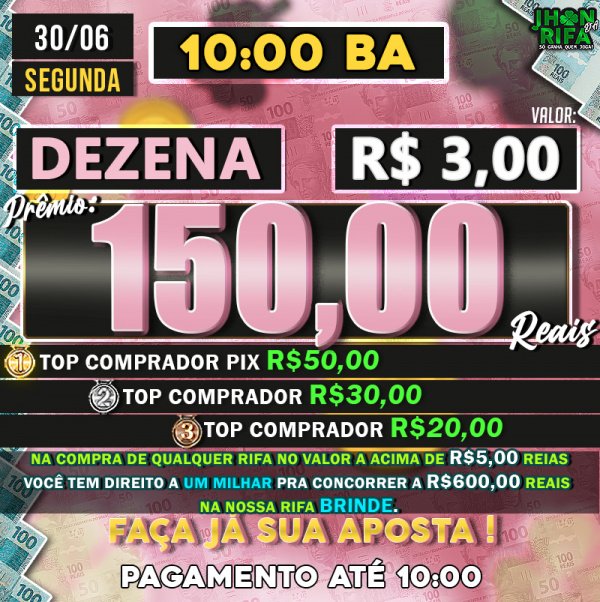 TOP 1ºR$50,00 /TOP 2º R$30,00 /TOP 3ºR$20,00