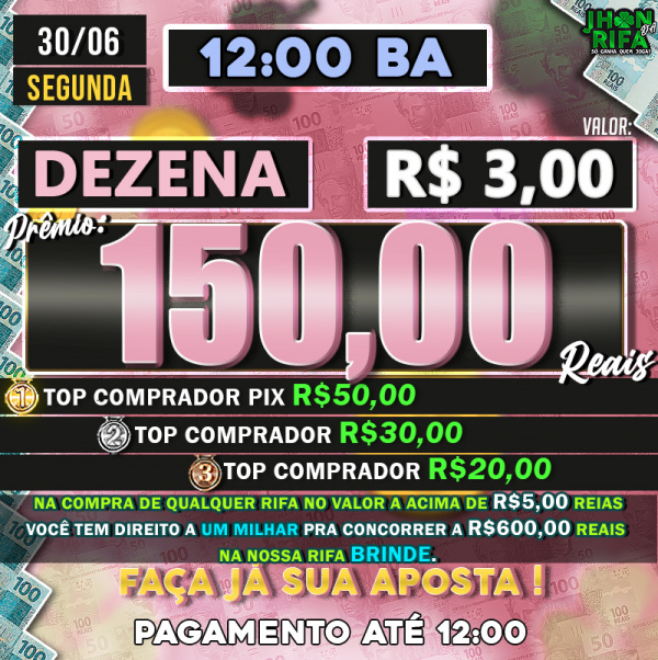 TOP 1ºR$50,00 /TOP 2º R$30,00 /TOP 3ºR$20,00