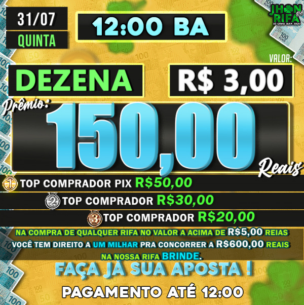 TOP 1ºR$50,00 /TOP 2º R$30,00 /TOP 3ºR$20,00