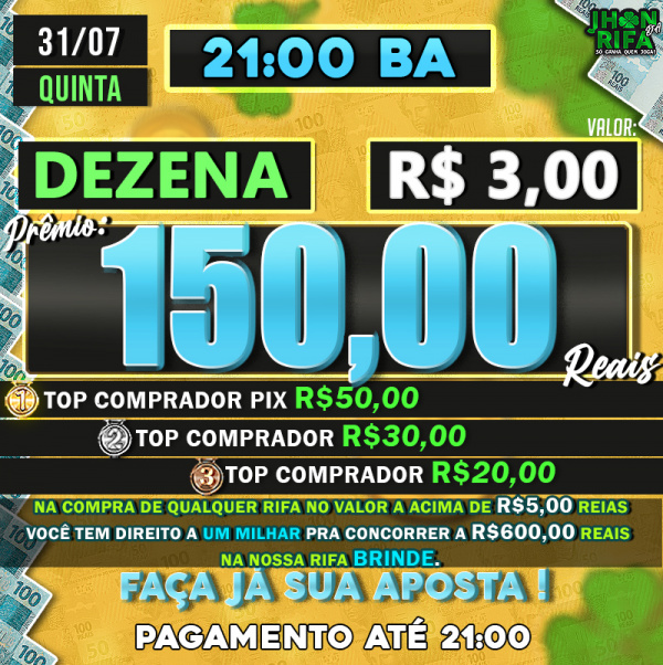 TOP 1ºR$50,00 /TOP 2º R$30,00 /TOP 3ºR$20,00