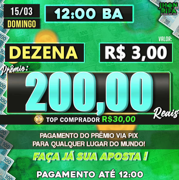 Sorteio: 15/03/2026 às 12:00