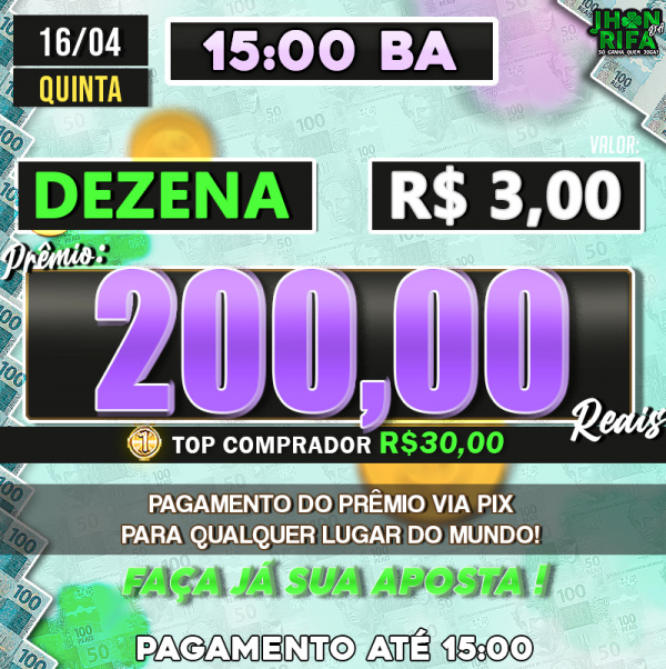 Sorteio: 16/04/2026 às 15:00
