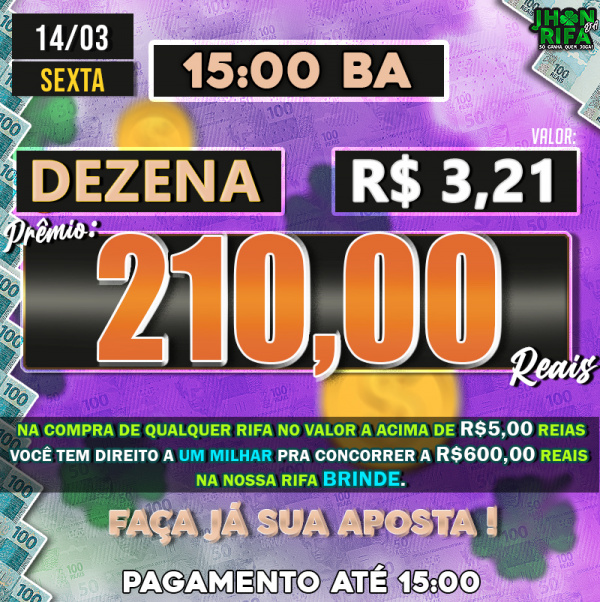 Sorteio: 14/03/2025 às 15:00