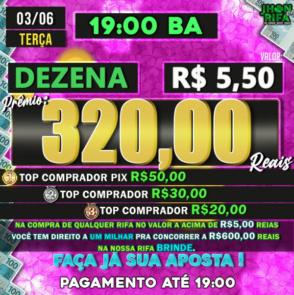 TOP 1ºR$50,00 /TOP 2º R$30,00 /TOP 3ºR$20,00