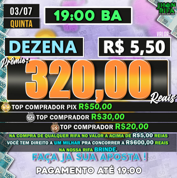 TOP 1ºR$50,00 /TOP 2º R$30,00 /TOP 3ºR$20,00