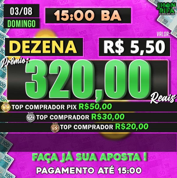 TOP 1ºR$50,00 /TOP 2º R$30,00 /TOP 3ºR$20,00