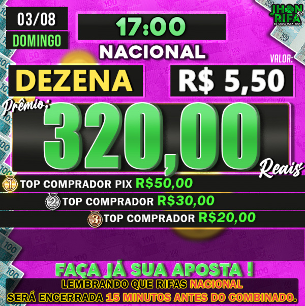 TOP 1ºR$50,00 /TOP 2º R$30,00 /TOP 3ºR$20,00