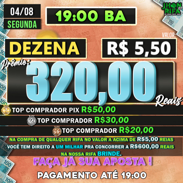 TOP 1ºR$50,00 /TOP 2º R$30,00 /TOP 3ºR$20,00