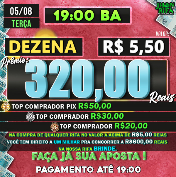 TOP 1ºR$50,00 /TOP 2º R$30,00 /TOP 3ºR$20,00