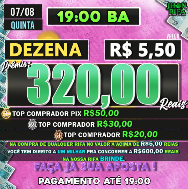 TOP 1ºR$50,00 /TOP 2º R$30,00 /TOP 3ºR$20,00
