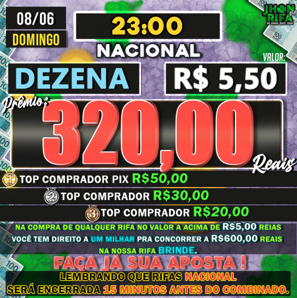 TOP 1ºR$50,00 /TOP 2º R$30,00 /TOP 3ºR$20,00