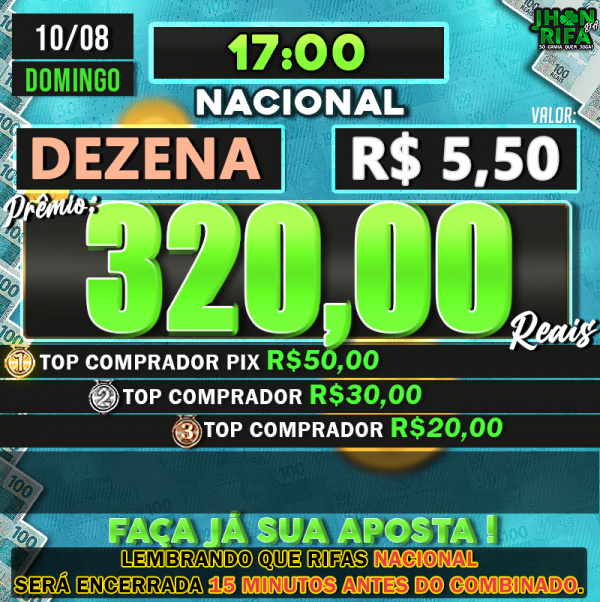 TOP 1ºR$50,00 /TOP 2º R$30,00 /TOP 3ºR$20,00