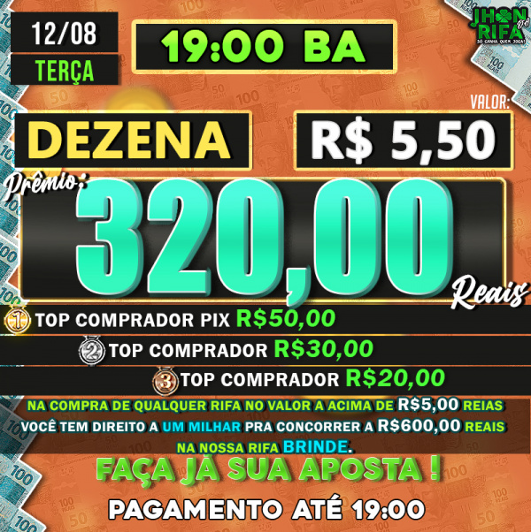 TOP 1ºR$50,00 /TOP 2º R$30,00 /TOP 3ºR$20,00