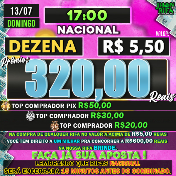 Sorteio: 13/07/2025 às 16:45