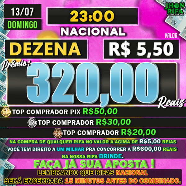 TOP 1ºR$50,00 /TOP 2º R$30,00 /TOP 3ºR$20,00