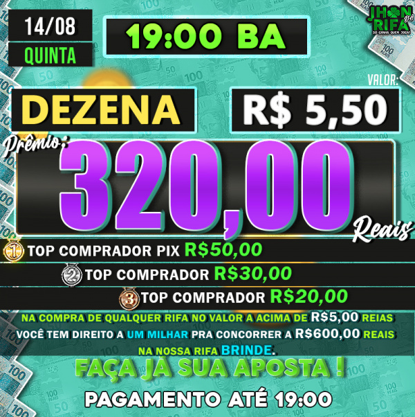Sorteio: 14/08/2025 às 19:00