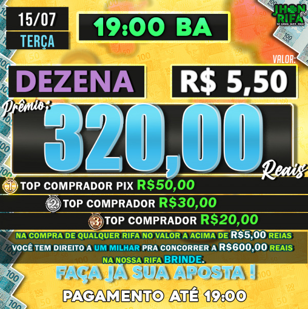 TOP 1ºR$50,00 /TOP 2º R$30,00 /TOP 3ºR$20,00