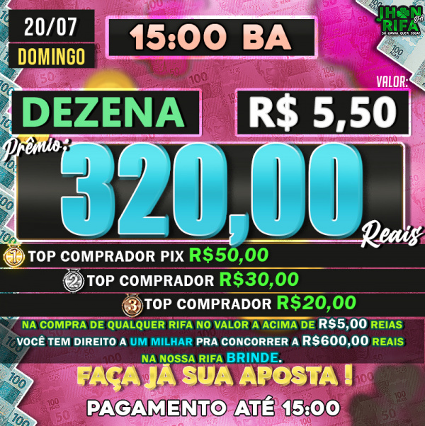TOP 1ºR$50,00 /TOP 2º R$30,00 /TOP 3ºR$20,00