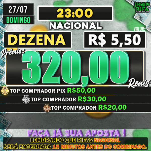 TOP 1ºR$50,00 /TOP 2º R$30,00 /TOP 3ºR$20,00