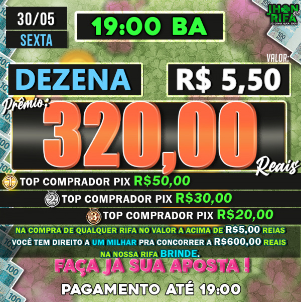 TOP 1ºR$50,00 /TOP 2º R$30,00 /TOP 3ºR$20,00
