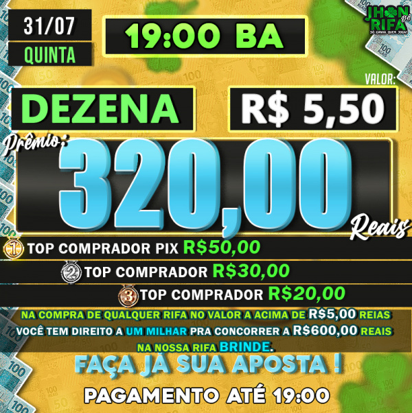 TOP 1ºR$50,00 /TOP 2º R$30,00 /TOP 3ºR$20,00