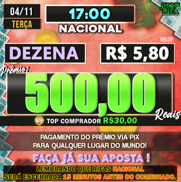 Sorteio: 04/11/2025 às 16:45