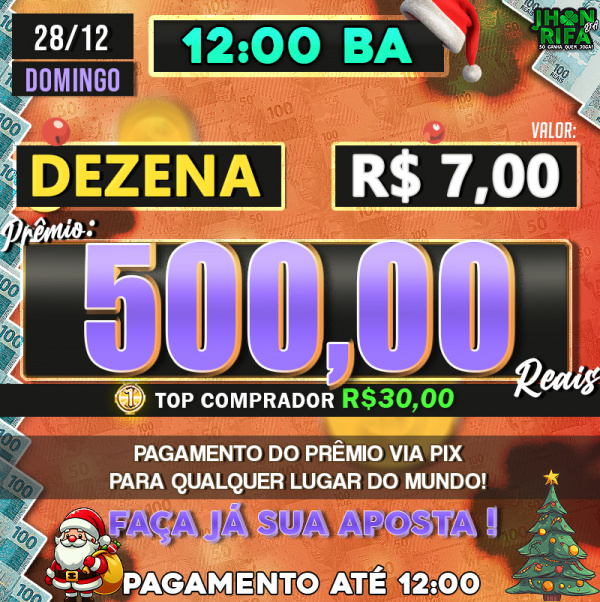 Sorteio: 28/12/2025 às 12:00