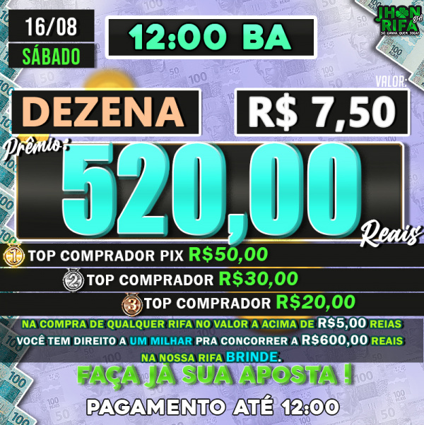 TOP 1ºR$50,00 /TOP 2º R$30,00 /TOP 3ºR$20,00