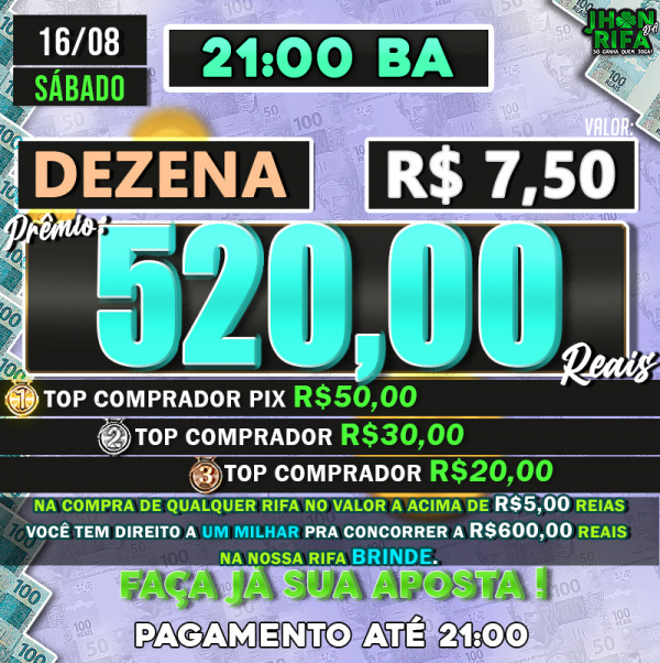 TOP 1ºR$50,00 /TOP 2º R$30,00 /TOP 3ºR$20,00