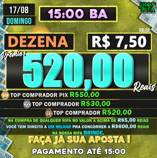 TOP 1ºR$50,00 /TOP 2º R$30,00 /TOP 3ºR$20,00