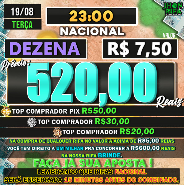 TOP 1ºR$50,00 /TOP 2º R$30,00 /TOP 3ºR$20,00