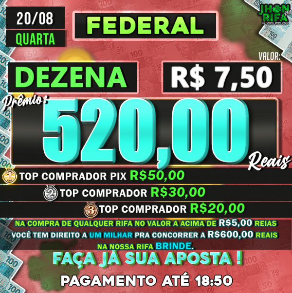 TOP 1ºR$50,00 /TOP 2º R$30,00 /TOP 3ºR$20,00