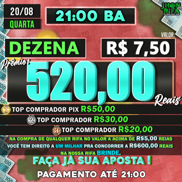 TOP 1ºR$50,00 /TOP 2º R$30,00 /TOP 3ºR$20,00