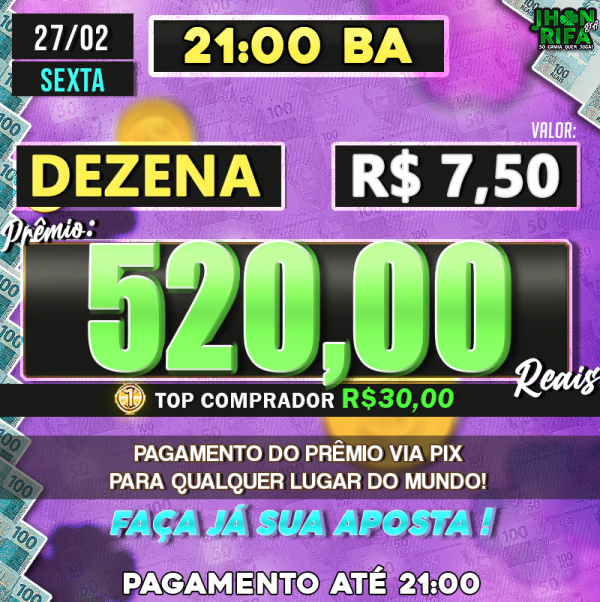 Sorteio: 27/02/2026 às 21:00