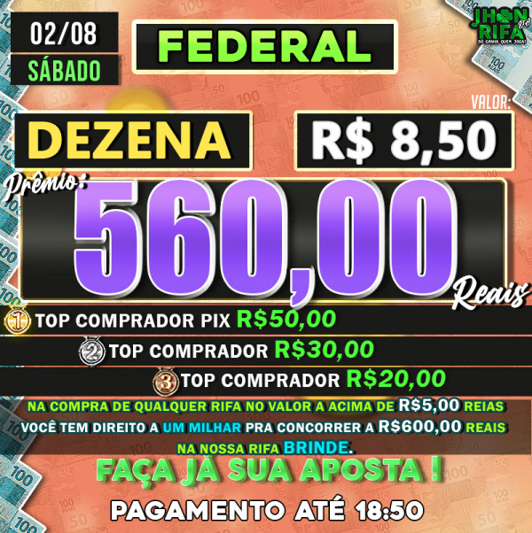 TOP 1ºR$50,00 /TOP 2º R$30,00 /TOP 3ºR$20,00