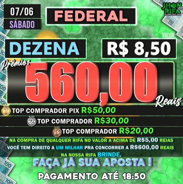 TOP 1ºR$50,00 /TOP 2º R$30,00 /TOP 3ºR$20,00