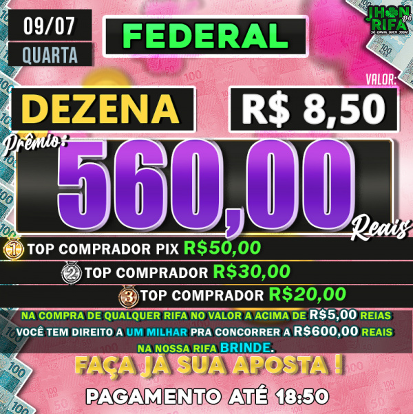 TOP 1ºR$50,00 /TOP 2º R$30,00 /TOP 3ºR$20,00