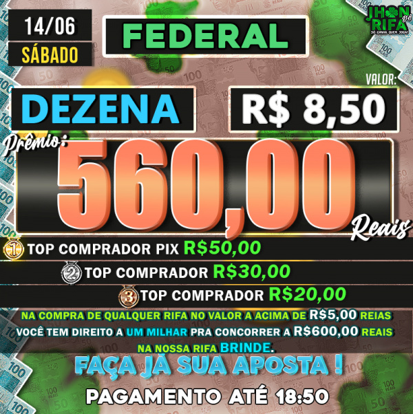 TOP 1ºR$50,00 /TOP 2º R$30,00 /TOP 3ºR$20,00