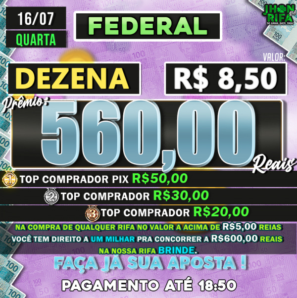 TOP 1ºR$50,00 /TOP 2º R$30,00 /TOP 3ºR$20,00