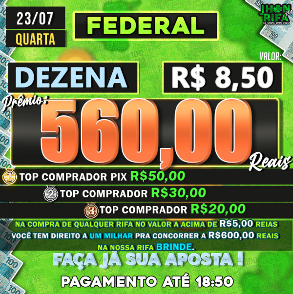 TOP 1ºR$50,00 /TOP 2º R$30,00 /TOP 3ºR$20,00