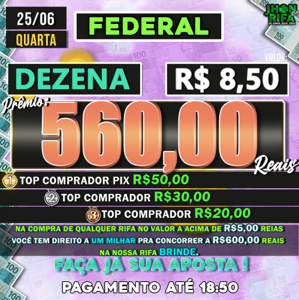 TOP 1ºR$50,00 /TOP 2º R$30,00 /TOP 3ºR$20,00