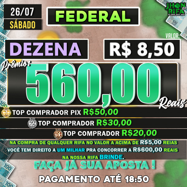 TOP 1ºR$50,00 /TOP 2º R$30,00 /TOP 3ºR$20,00