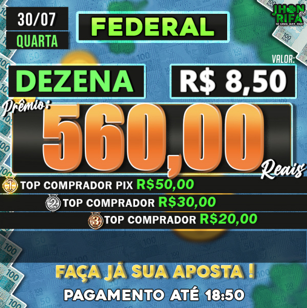 TOP 1ºR$50,00 /TOP 2º R$30,00 /TOP 3ºR$20,00