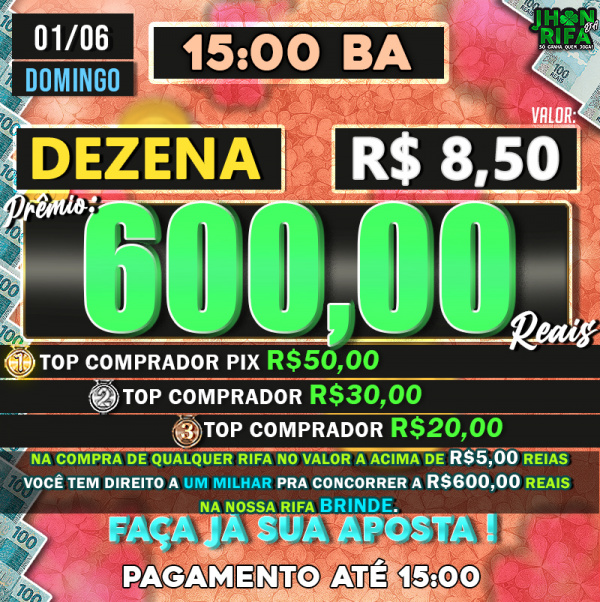 TOP 1ºR$50,00 /TOP 2º R$30,00 /TOP 3ºR$20,00