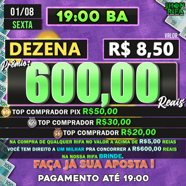 TOP 1ºR$50,00 /TOP 2º R$30,00 /TOP 3ºR$20,00