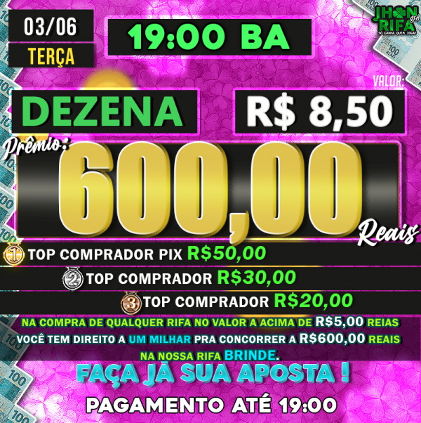 TOP 1ºR$50,00 /TOP 2º R$30,00 /TOP 3ºR$20,00